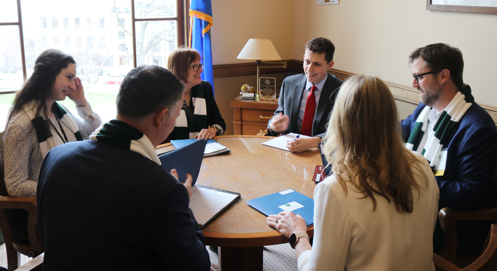 Rally team meeting in a legislative office